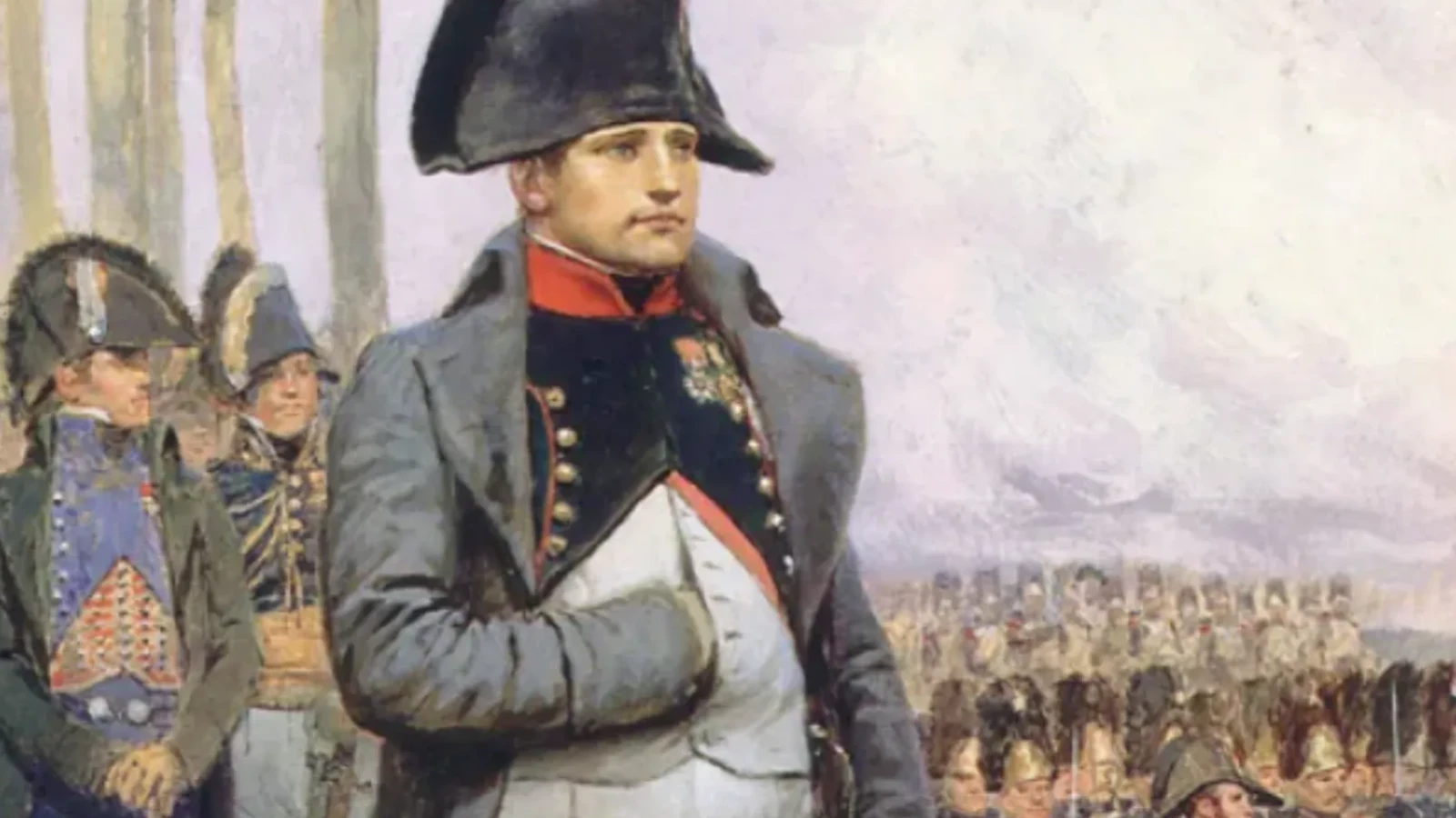 Într-o faimoasă reprezentare picturală a lui Napoleon Bonaparte din anul 1812, liderul francez este surprins într-o postură care continuă să suscite curiozitate și în prezent. Surprins în centrul cabinetului său de lucru și purtând haina militară de ceremonie, acesta afișează o ținută discret înclinată, însă elementul care atrage imediat atenția observatorului este poziționarea mâinii sale drepte.