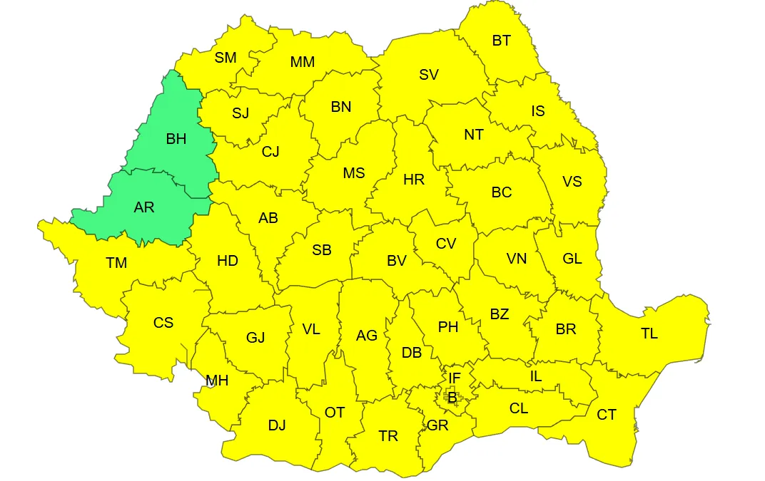 Astfel, luni, între orele 10.00 și 20.00, este în vigoare o avertizare Cod galben de temperaturi scăzute. Conform acesteia, în cea mai mare parte a Moldovei, în sudul, centrul și estul Transilvaniei, precum și în Dobrogea, sudul, centrul și estul Munteniei și în sudul Olteniei se vor înregistra temperaturi deosebit de scăzute, în medie, cu 7-9 grade mai mici decât cele normale datei, cu valori ce se vor încadra în general între -8 și -4 grade. În nordul Moldovei, precum și în depresiunile și văile din Transilvania, gerul va persista și vor fi temperaturi în jurul a -10 grade.