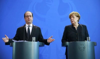 "Europa se confruntă cu provocări interne şi externe care pot fi gestionate numai lucrând împreună", a spus Merkel, la Berlin, într-o conferinţă de presă comună cu Hollande.