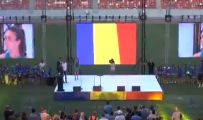 Scena de la Arena Naţională a fost aşezată spre tribuna oficială, iar la eveniment au fost prezenţi copii de la CSM Bucureşti