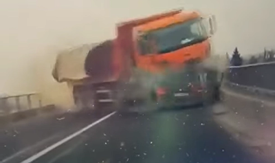 Imaginile sunt extrem de șocante. Autoturismul lovit de camion nu a avut nicio șansă împotriva mastodontului. Este evident că mașina a fost lovită în plin, iar acest lucru este clar vizibil pe înregistrările video realizate de camera de bord a unei alte mașini aflate în trafic.