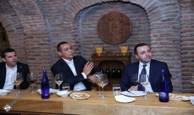 Premierul Victor Ponta a fost la Tbilisi, unde a asistat la Supercupa Europei, meci disputat între FC Barcelona și FC Sevilla. Înainte de meci, Ponta, alături de Daniel Constantin, au băut un pahar de vin într-o cramă, la invitația premierului georgian Irakli Garibashvili.