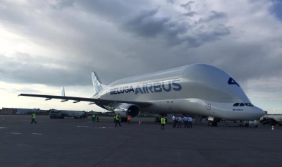 Un avion de tip Airbus Beluga, cea mai mare aeronavă cargo a companiei Airbus şi una dintre cele mai mari din lume, a aterizat miercuri după-amiază pe Aeroportul Henri Coandă (Otopeni), fiind întâmpinat cu tunuri de apă, dat fiind că este vorba de o premieră.
