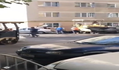 Scene incredibile în Râmnicu-Vâlcea! Câțiva angajați au umplut portbagajul unei mașini de lux cu...bitum! Oamenii turnau asflat pe o stradă din oraș, între blocuri. Când au crezut că nu îi vede nimeni, muncitorii au luat asfaltul și l-au băgat în mașina de 20.000 de euro.
