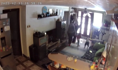 În imaginile video se poate observa cum o familie iese din casă, în timp ce totul se mișcă în jurul lor.