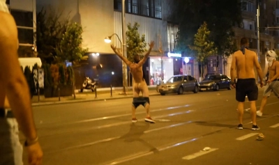 Violenţele au continuat târziu în noapte, cu huligani care au incendiat mobilier urban şi cu jandarmi care au fugărit şi bătut protestatari prin zona Pieţei Victoriei.