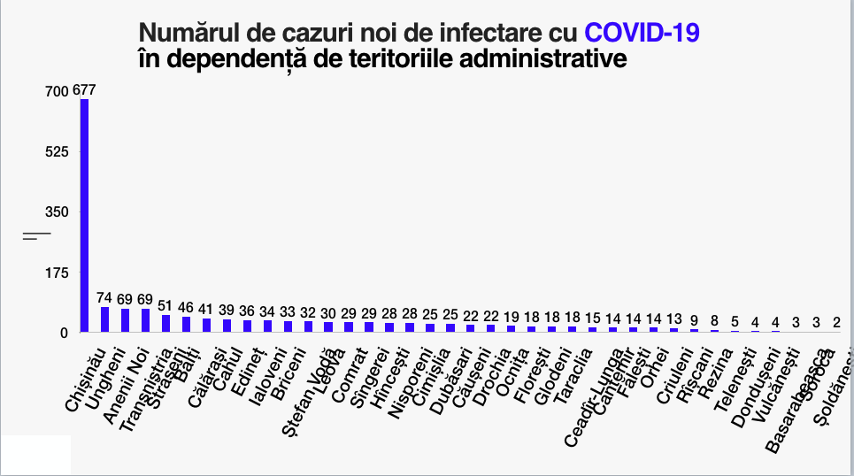 Totodată subliniem că cel mai mare număr de persoane infectate într-o singură zi în Moldova a fost raportat pe 4 martie 2021. Atunci autoritățile anunțau 1.800 de cazuri în 24 de ore.