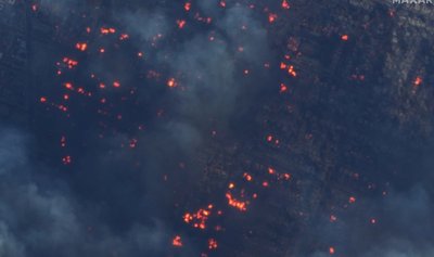 Cele mai mari două evenimente - incendiile Palisades şi Eaton - au format o centură în jurul oraşului, atât de mare încât a fost vizibilă din spaţiu.