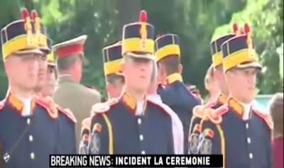 Un incident ce se putea transforma într-o adevărată tragedie a avut loc chiar lângă președintele Klaus Iohannis. Şeful statului a participat luni la ceremonia de inaugurare a monumentului "Aripi" de la Piaţa Presei Libere, acolo unde a fost prezentă și garda de onoare. Unui soldat i s-a făcut rău, cel mai probabil din cauza căldurii. Soldatul a leșinat și a fost ridicat de către colegi, iar apoi i s-a acordat primul ajutor. El și-a revenit.