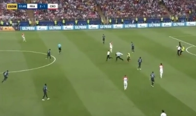 Trei suporteri au intrat pe teren la finala Cupei Mondiale, în minutul 53 al meciului dintre Franţa şi Croaţia, de pe stadionul Lujniki, din Moscova.