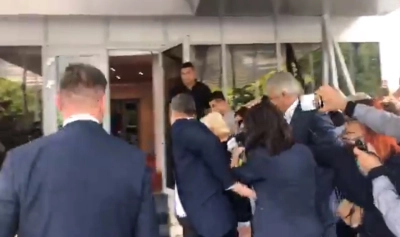 La sosirea Vioricăi Dăncilă, unul dintre protestatari a strigat: „E în siguranţă fiul dumneavoastră la Curtea de Conturi?”