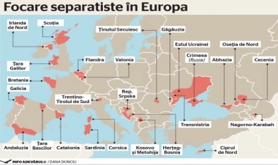 Dacă scoţienii vor decide, pe 18 septembrie, că nu mai vor să rămână alături de Marea Britanie, rezultatele referendumului vor reprezenta un precedent periculos pentru întreaga Europă, unde, de-a lungul ultimilor 20 de ani, au apărut şi s-au consolidat numeroase focare separatiste.