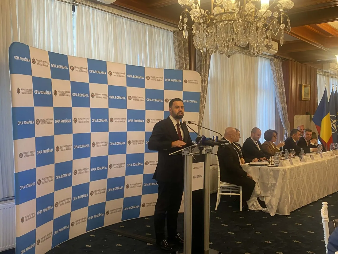 Au luat cuvântul Nicoleta Pauliuc, președintele Comisiei de Apărare din cadrul Senatului, Daniel Constantin, președintele Agenției Române pentru Investiții și Comerț Exterior (ARICE), Corneliu Mureșan, secretar de stat în cadrul Seretariatului General al Guvernului, Silviu Macovei, secretar de stat în cadrul Ministerului Afacerilor Interne, Răzvan Pîrcălăbescu, președintele OPIA, precum și reprezentanți ai mediului bancar și ai companiilor din industria de apărare, cum ar fi ROMARM.