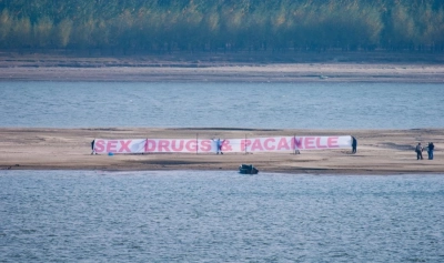 Mai mulți tineri au montat un banner uriaș pe o insula formată pe Dunăre, ei inscripționând mesajul „Sex, drugs & păcănele”, ca protest față de viceprimarul orașului, Picu Apostol Roman, care a spus că turiștii sunt atrași în orașele port de aceste elemente, scrie Mediafax.