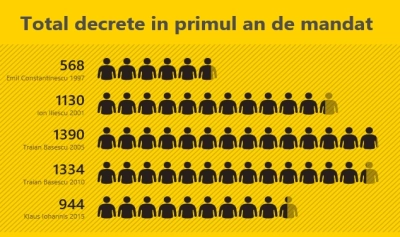 Conform analizei, Iohannis a semnat mai puține decrete, în primul mandat, în comparație cu Ion Iliescu în ultimul mandat sau cu Traian Băsescu, în oricare dintre cele două mandate.
