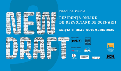 Înscrierile la a treia ediţie a New Draft, rezidenţă de dezvoltare de scenarii, care se desfăşoară în format online şi fizic, se prelungesc cu şapte zile. Noul deadline de depunere a proiectelor este pe 2 iunie, ora 23.59.