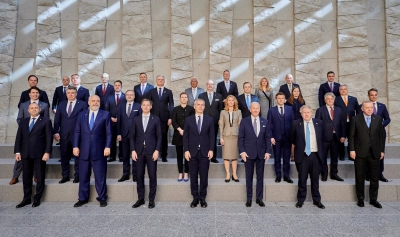 La poza de grup cu liderii din NATO, Iohannis a fost pus de către organizatori pe ultimul rând. În timp ce se așezau pentru fotografie, președinții și premierii țărilor membre NATO au discutat între ei, cu excepția lui Klaus Iohannis, așa cum o demonstrează un instantaneu pus de George Simion.