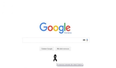 „În memoria victimelor din clubul Colectiv” este și mesajul pe care Google România îl afișează pentru toți cei care ating cu mouse-ul funda de doliu.