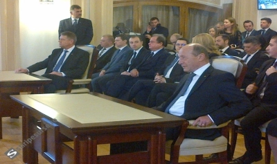 Traian Băsescu a vorbit şi el despre Constituţie, dând împresia că îi răspunde noului preşedinte. "Am constatat în aceşti 10 ani în societatea românească şi în mass-media germenii pasului înapoi. Uneori trebuie să forţezi Constituţia", a declarat Băsescu.