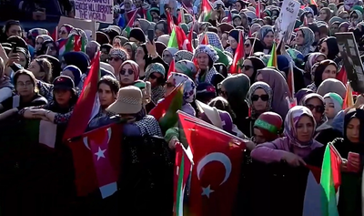 "Israel asasin, afară din Palestina" sau "rezistenţa continuă, trăiască Hamas" au fost câteva dintre scandările celor prezenţi, potrivit postului de televiziune turc NTV.