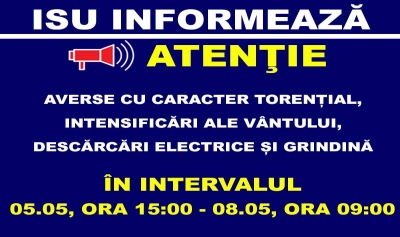 ”Ca urmare a prognozei emise de ANM, vă recomandăm următoarele: