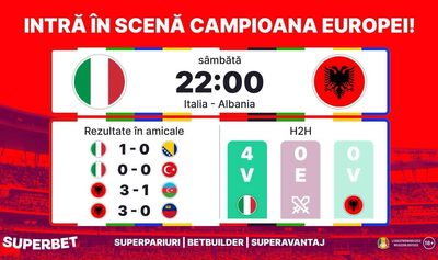 - Italia și Albania s-au întâlnit ultima dată în noiembrie 2022, într-un amical câștigat de Azzurri, cu 3-1 la Tirana. Partida a avut loc chiar înainte de CM 2022, turneu la care nu era calificată niciuna dintre echipe.