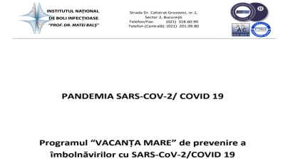 Proiectul intitulat „Programul 'VACANŢA MARE' de prevenire a îmbolnăvirilor cu SARS-CoV-2/COVID 19” conceput de Institutul Naţional de Boli Infecţioase „Matei Balş” se împarte pe nouă pagini şi vine cu măsuri riguroase.