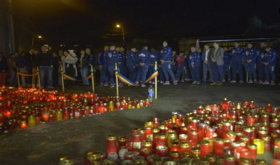 Fotbaliștii primei reprezentative a României împreună cu selecționerul Anghel Iordănescu și cu președintele FRF, Răzvan Burleanu, au aprins, miercuri seara, lumânări la clubul Colectiv, în memoria victimelor tragediei din 30 octombrie.