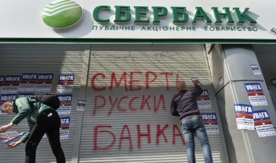 Kievul a impus recent sancţiuni asupra Sberbank şi altor bănci de stat ruse care operează în Ucraina, pe fondul amplificării tensiunilor legate de regiunile separatiste din estul Ucrainei, care sunt susţinute de Rusia.
