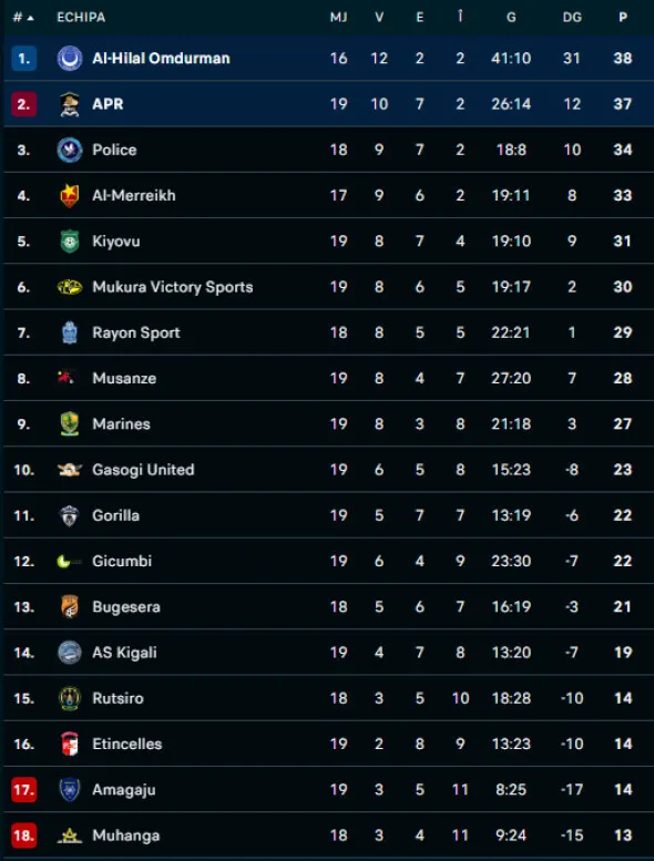 Al-Hilal Omdurman a adunat 38 de puncte și a detronat-o pe APR, care rămâne la o lungime distanță, pe locul secund.