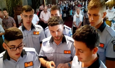 Acum câteva luni, un videoclip cu mai mulţi elevi ai Şcolii de Agenţi de Poliţie Vasile Lascăr din Câmpina devenea viral. Tinerii, îmbrăcaţi în uniforme de serviciu, ofereau răspunsurile liturgice la o biserică din Câmpina. Presa a preluat subiectul şi l-a prezentat ca inedit. Însă, pentru Francisco Iaru şi pentru colegii săi era un firesc al lucrurilor. Nimic artificial, doar normalitatea omului care îl slujeşte pe Dumnezeu, indiferent de uniforma pe care o poartă, conform basilica.ro