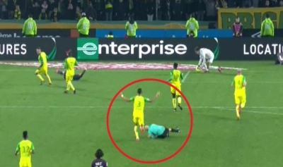 Incidentul a avut loc în minutul 90 al meciului de la Nantes şi în urma lui numai arbitrul a căzut. De la pământ, centralul l-a lovit intenţionat pe jucător. cu piciorul, apoi s-a ridicat şi i-a arătat al doilea cartonaş galben, eliminându-l. Reluările TV au arătat că fundaşul s-a ciocnit involuntar de arbitru, cei doi urmărind un contraatac al oaspeţilor.