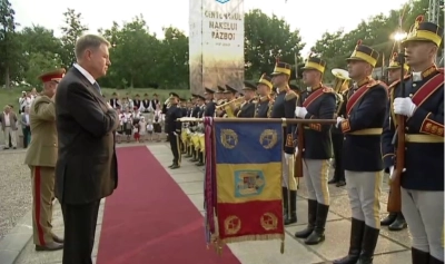 Preşedintele Iohannis a decorat drapelele de luptă ale unităţilor militare succesoare ale tradiţiilor de luptă de acum 100 de ani. De asemenea, eroul veteran Daniel Porumb, care a fost rănit grav într-o misiune în Irak, a vorbit despre semnificaţia Mausoleului de la Mărăşeşti.