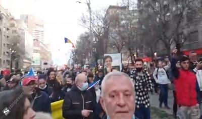 Printre protestatari se află tineri și tinere, dar și părinți cu copii. Mulți nu poartă mască de protecție.