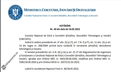 Consiliul Naţional de Etică a Cercetării Ştiinţifice, Dezvoltării Tehnologice şi Inovării (CNECSDTI) a publicat, marți, decizia prin care l-a absolvit pe Lucian Bode de suspiciunile de plagiat.