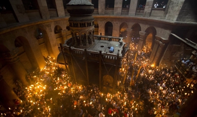 Mii de pelerini au aşteptat în Biserica Mormântului Sfânt venirea Luminii Sfinte, considerată cea mai evidentă dintre minunile creştine care se petrec în Biserica Ortodoxă, notează news.ro.