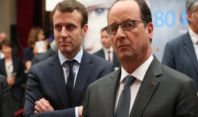 François Hollande l-a întâmpinat zâmbitor cu o strângere de mână pe fostul său ministru al economiei, după care au ascultat unul lângă celălalt imnul naţional şi 'Cântecul partizanilor', un simbol al Rezistenţei franceze în timpul ocupaţiei naziste.