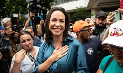 María Corina Machado este o politiciană venezueleană proeminentă, inginer industrial și lider al opoziției. Ea este coordonatoarea națională a partidului politic liberal Vente Venezuela, fondat în 2013 și principal oponent politic al lui Nicolas Maduro, cel care i-a interzis să mai părăsească Venezuela.