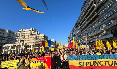 „Astăzi o să îi scutim pe acești guvernatori, pe acești administratori slabi, pe acești conducători vremelnici ai României, de prezența noastră. Să se huiduie ei între ei, să facă bâlci, să facă ce vor ei - ei între ei”, a spus liderul AUR.