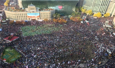 Aceasta este una dintre cele mai mari manifestaţii antiguvernamentale în Coreea de Sud după mai multe decenii. Ea a avut loc lângă reşedinţa prezidenţială, Casa Albastră. Preşedinta Park Geun Hye este acuzată că a permis unei prietene să influenţeze decizii politice.