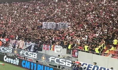 Galeriile echipelor FCBS şi Dinamo au scandal minute bune 'M...E PSD' duminică seara, la meciul din etapa a doua a Ligii I, de pe Arena Naţională. Galeria dinamovistă a afişat şi un banner cu mesajul "Fără penali în România".