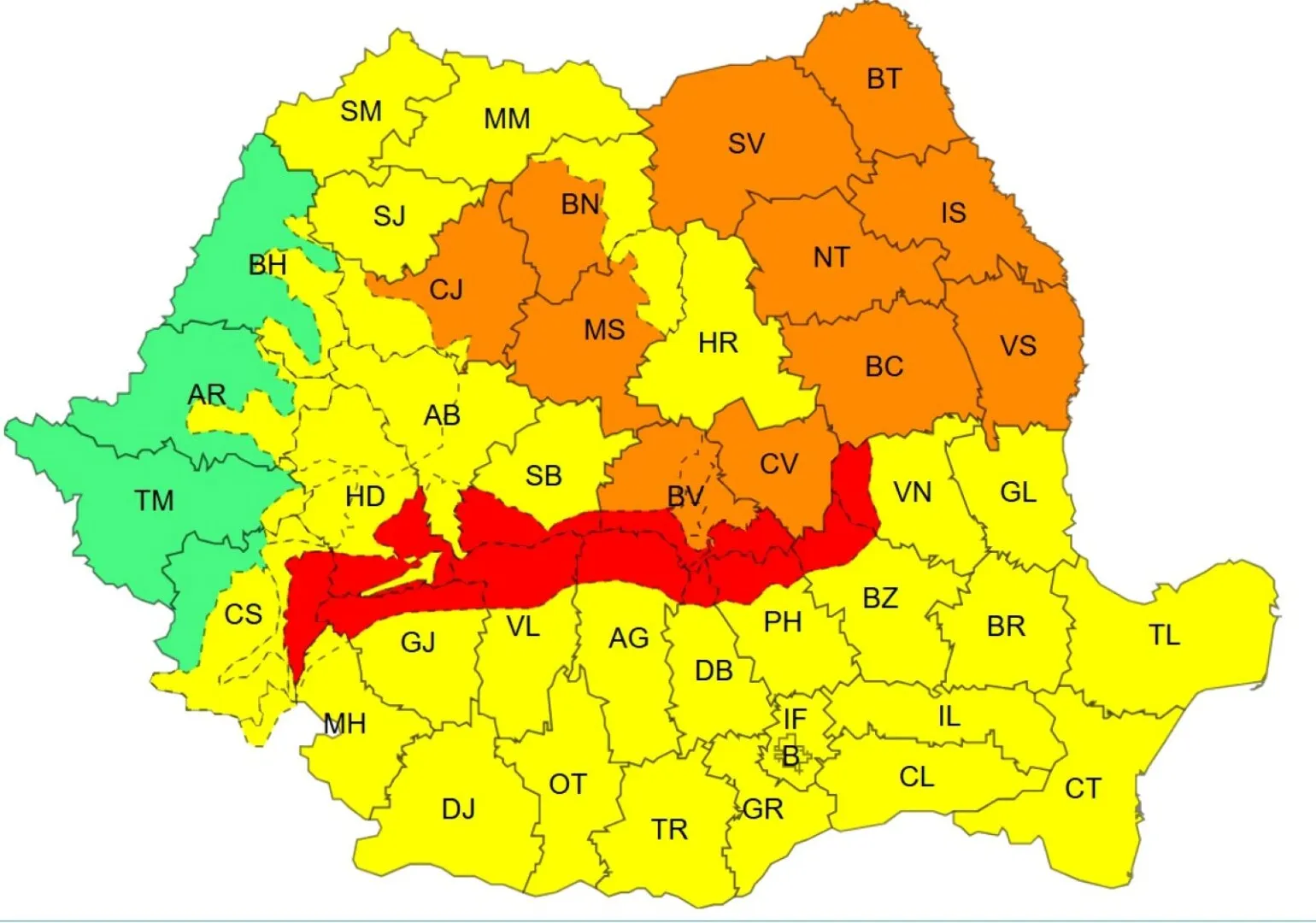 Totodată, ANM a emis și o avertizare Cod portocaliu pentru zona de munte a județului Alba.