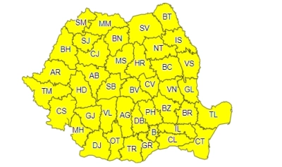 Administraţia Naţională de Meteorologie (ANM) a emis, sâmbătă dimineaţă, atenţionare Cod galben vizând instabilitate atmosferică temporar accentuată, cantităţi de apă însemnate valabil sâmbătă, în Maramureş, Moldova, Dobrogea, local în nordul Transilvaniei, în Muntenia şi la munte, potrivit news.ro.