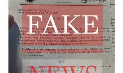 Un document de evidență internă a angajaților Metrorex S.A. este prezentată drept o „dovadă” a pregătirilor pe care autoritățile din România le-ar face în secret pentru mobilizarea rezerviștilor pentru a fi trimiși în Ucraina. Este o dezinformare, transmite Ministerul Apărării, dar și Metrorex, potrivit Mediafax.