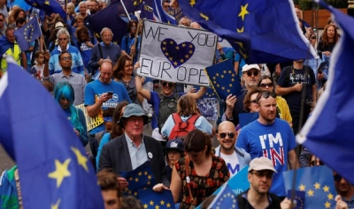 La Londra, în jur de 2.000 de persoane plecate de dimineaţă din Hyde Park au ajuns după-amiază la sediul Parlamentului din Westminster, agitând numeroase drapele europene şi scandând sloganuri precum "Stop Brexitului" şi "Avem nevoie de UE".