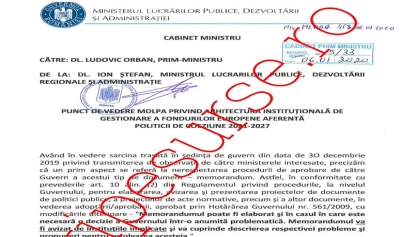 Ministrul propus la Dezvoltare, Ion Ștefan, semnează un document transmis premierului Ludovic Orban prin care sunt respinse propunerile de reorganizare a sistemului de gestionare a fondurilor europene făcute de ministrul Fondurilor Europene. Documentul vorbeşte şi despre riscul escaladării tensiunilor cu privire la autonomia Ţinutului Secuiesc.