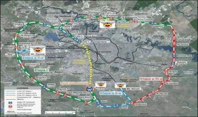 Proiectul inelului feroviar de 68 de km din jurul Bucureștiului are trei etape: