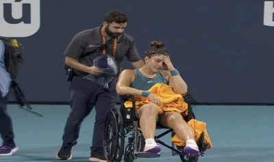 Jucătoarea canadiană Bianca Andreescu s-a accidentat la glezna stângă şi a părăsit terenul în scaun cu rotile la meciul cu Ekaterina Alexandrova, de marţi dimineaţă, din optimile Miami Open.