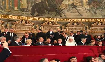 La evenimentul de la Ateneul Român vor susţine discursuri preşedintele Klaus Iohannis, preşedintele Senatului, Călin Popescu Tăriceanu, vicepreşedintele Camerei Deputaţilor, Florin Iordache, preşedintele Parlamentului European, Antonio Tajani, preşedintele Consiliului European, Donald Tusk, preşedintele Comisiei Europene, Jean-Claude Juncker şi premierul României, Viorica Dăncilă.