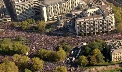 Mii de persoane care cer organizarea unui referendum privind un acord final între UE și Marea Britanie s-au strâns la Londra în cadrul unei manifestații pe care organizatorii o numesc cea mai "mare și importantă" demonstrație în acest sens, relatează site-ul postului BBC.